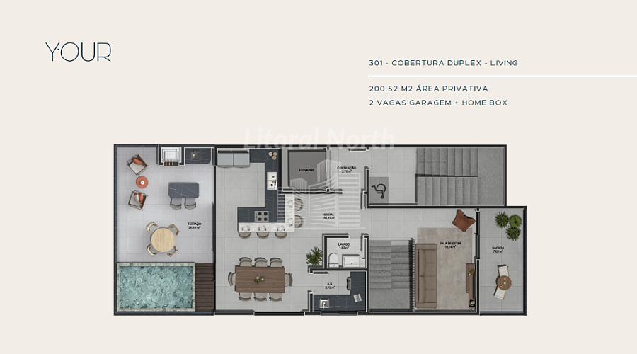 UNIDADE 301 - COBERTURA DUPLEX DUPLEX COM 200,52 M2 ÁREA PRIVATIVA - 2 VAGAS GARAGEM + HOME BOX - VENDIDO
