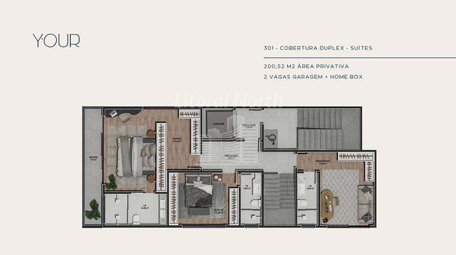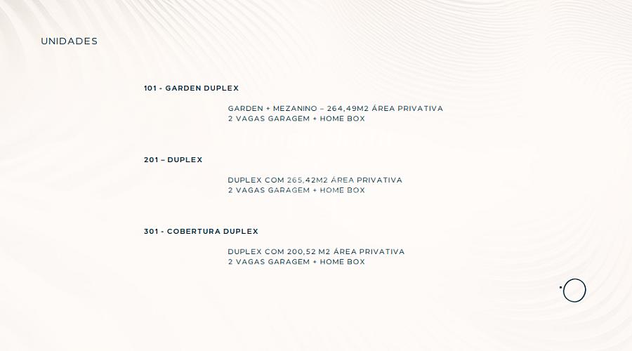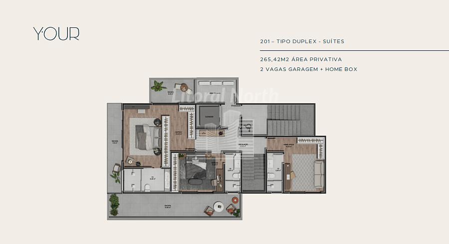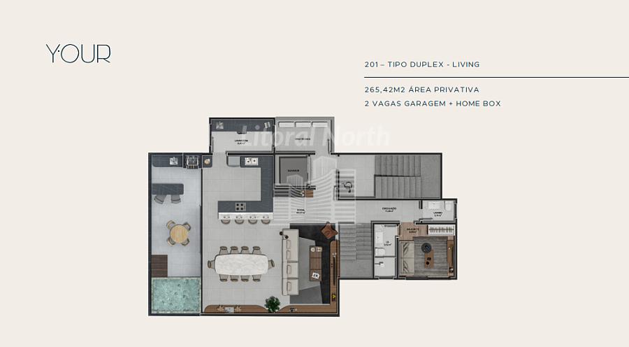 UNIDADE 201 - DUPLEX DUPLEX COM 265,42M2 ÁREA PRIVATIVA - 2 VAGAS GARAGEM + HOME BOX.