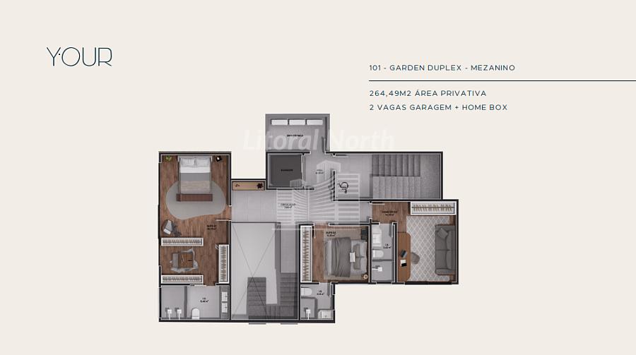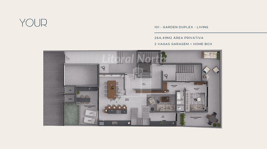 UNIDADE 101 - GARDEN DUPLEX GARDEN + MEZANINO - 264,49M2 ÁREA PRIVATIVA - 2 VAGAS GARAGEM + HOME BOX.