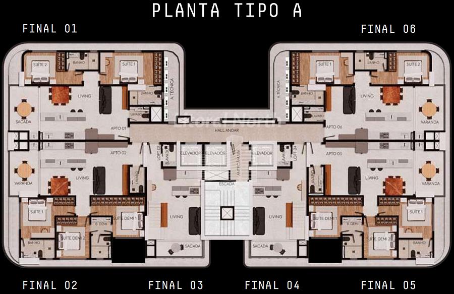 Planta tipo final 01 e 06: