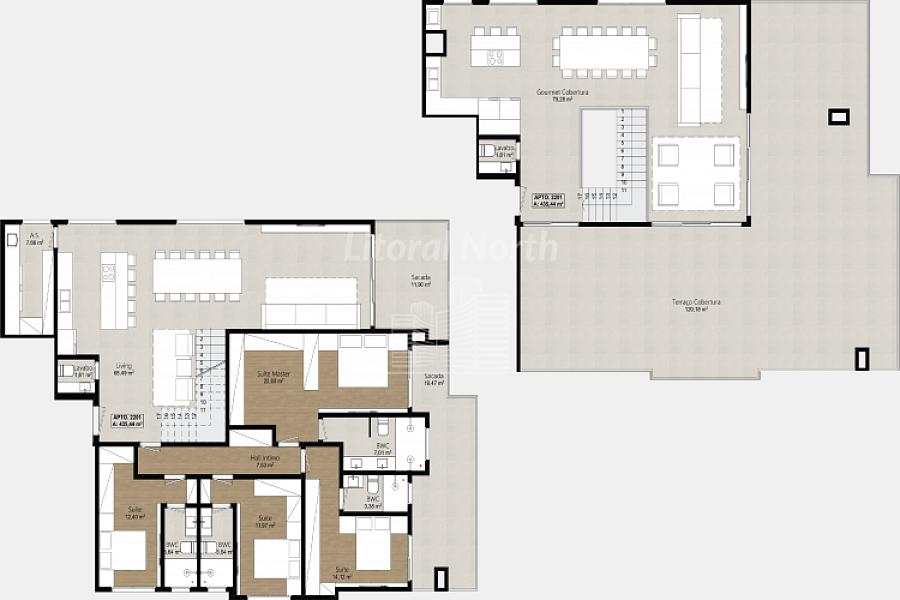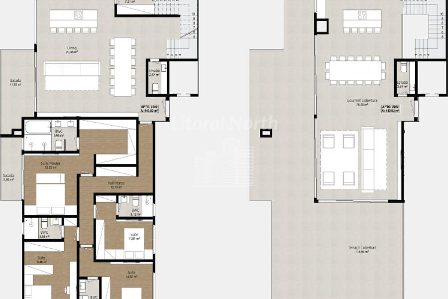 *Apartamentos com opções de 1 a 3 suítes, de 98 a 112m², e dois duplex exclusivos, de 435 e 440m² , todos com duas vagas de garagem, living integrado e detalhes que elevam o conforto e a funcionalidade
