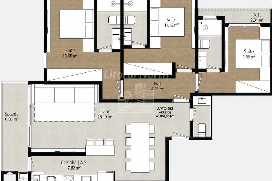 3 dormitórios (3 suítes)