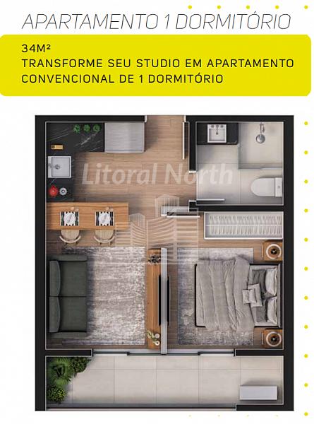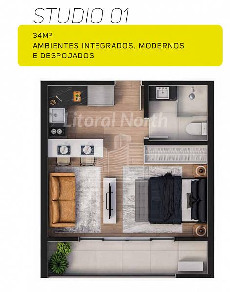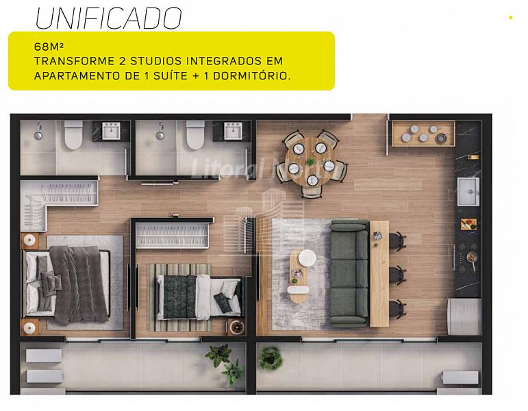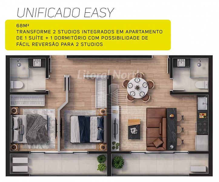 - Opção de unificar 02 Studios para se tornar 01 apartamento com 02 dormitórios
