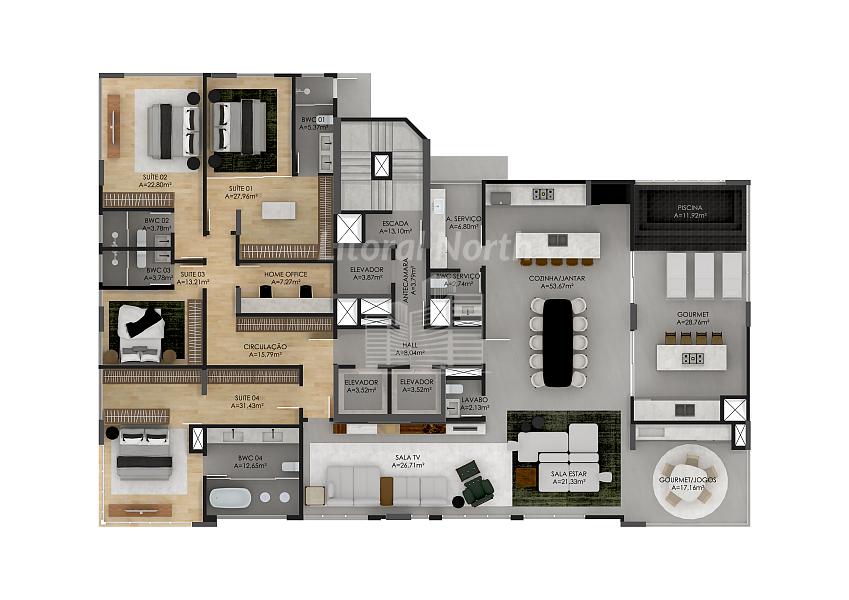 4 dormitórios (4 suítes)
