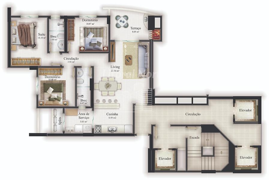 3 dormitórios (3 suítes)