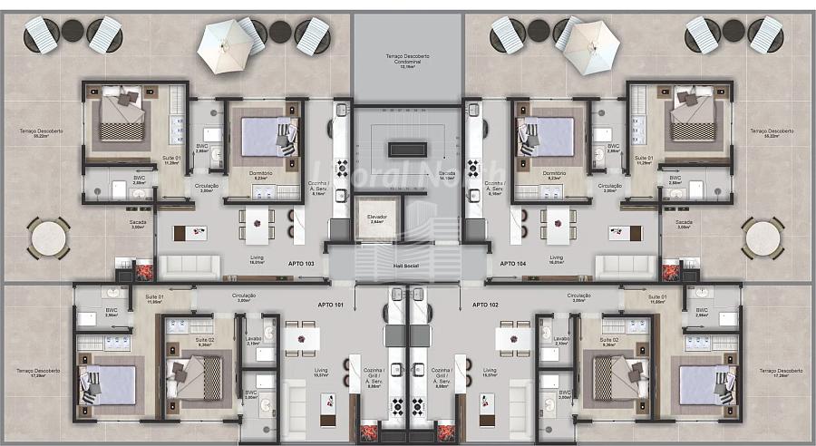 2 dormitórios (2 suítes)
