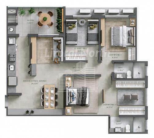 3 dormitórios (1 suíte)