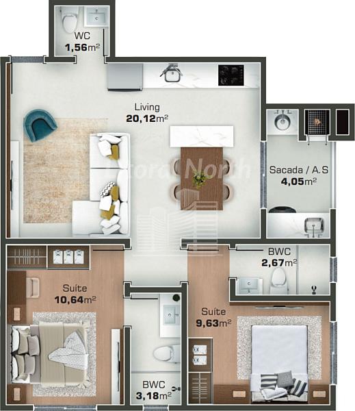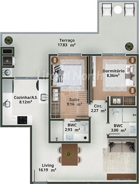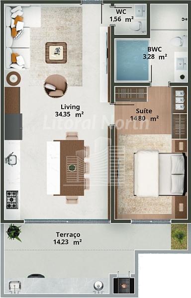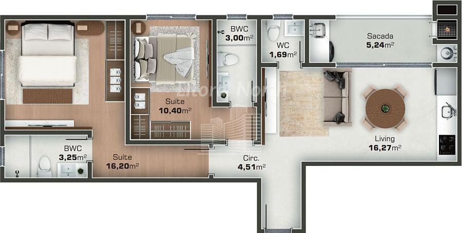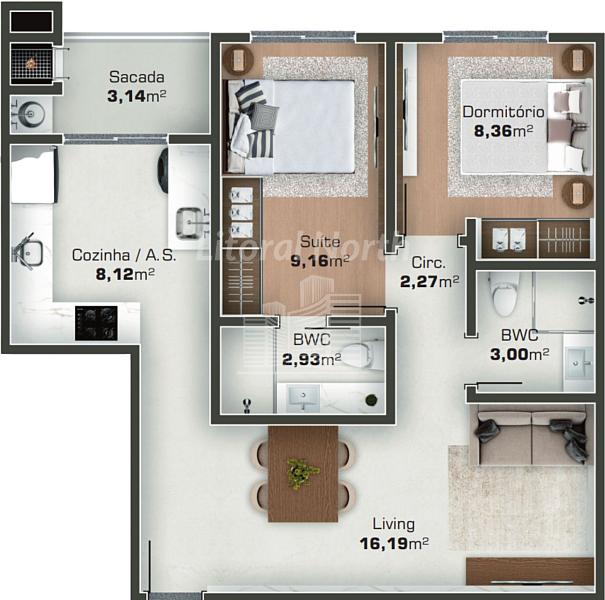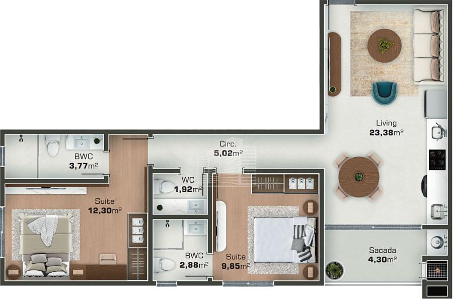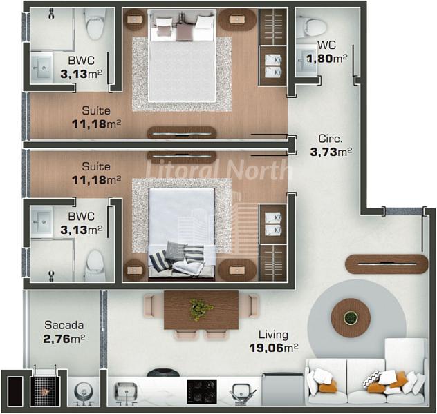 2 dormitórios (2 suítes)